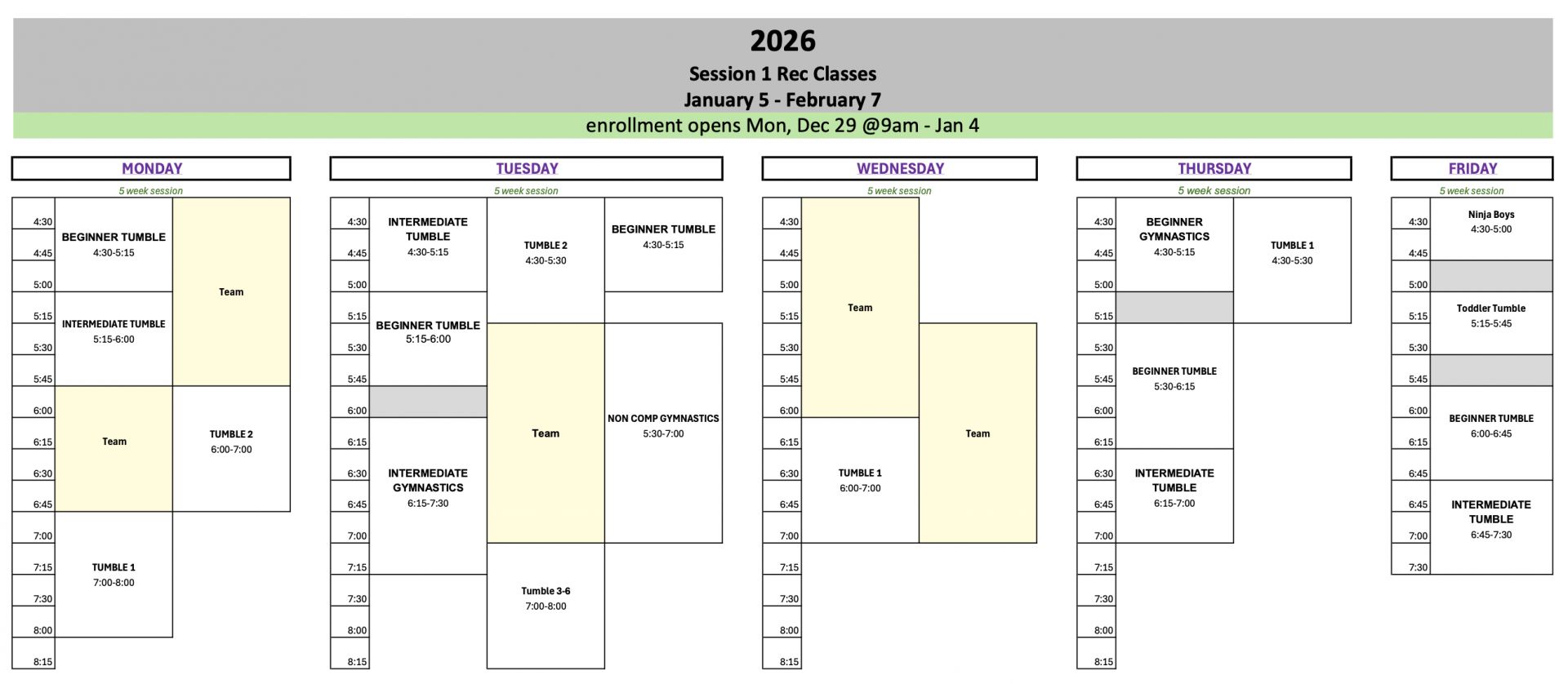 Enrollment opens Monday, December 29 at 9am - January 4. Classes begin January 5, 2026.